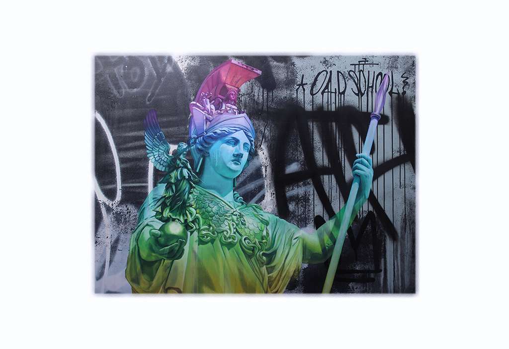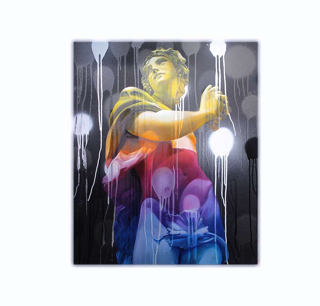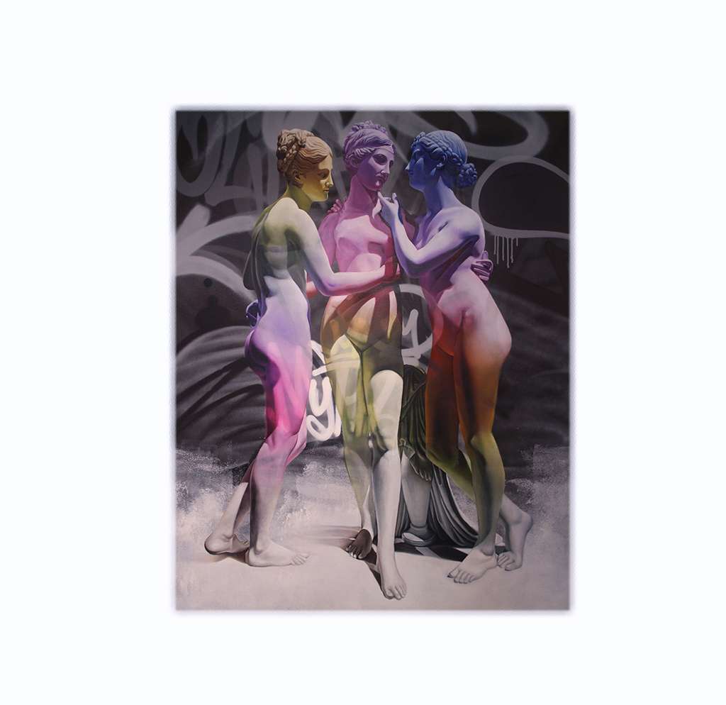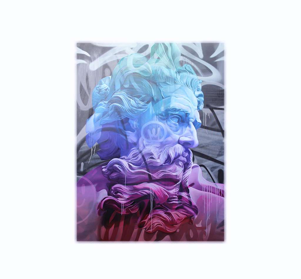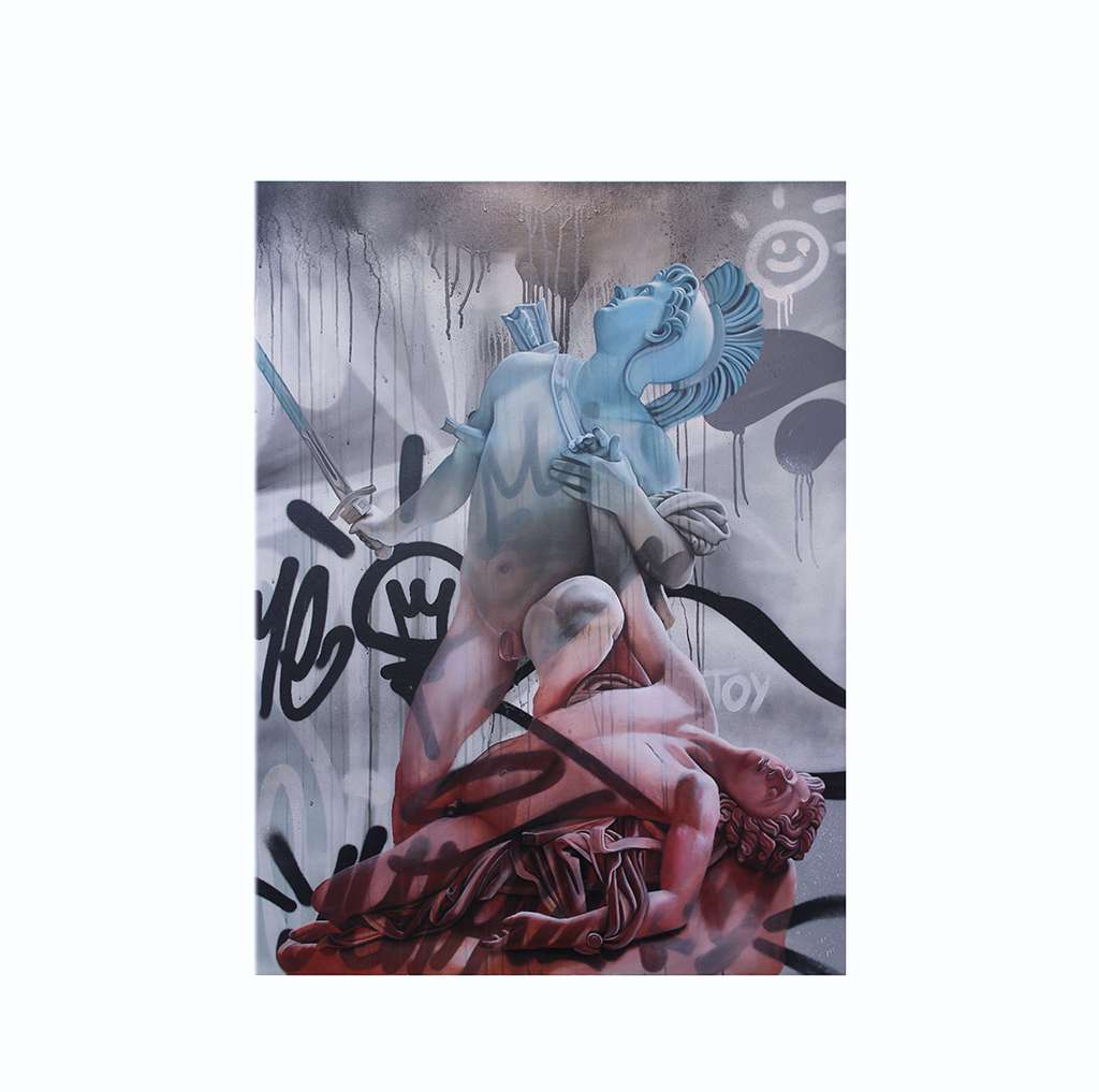 Known for their striking blend of classical art and graffiti, the pair continues to challenge visual conventions with this new body of work — a vibrant exploration of colour, form, and material that bridges past and present.