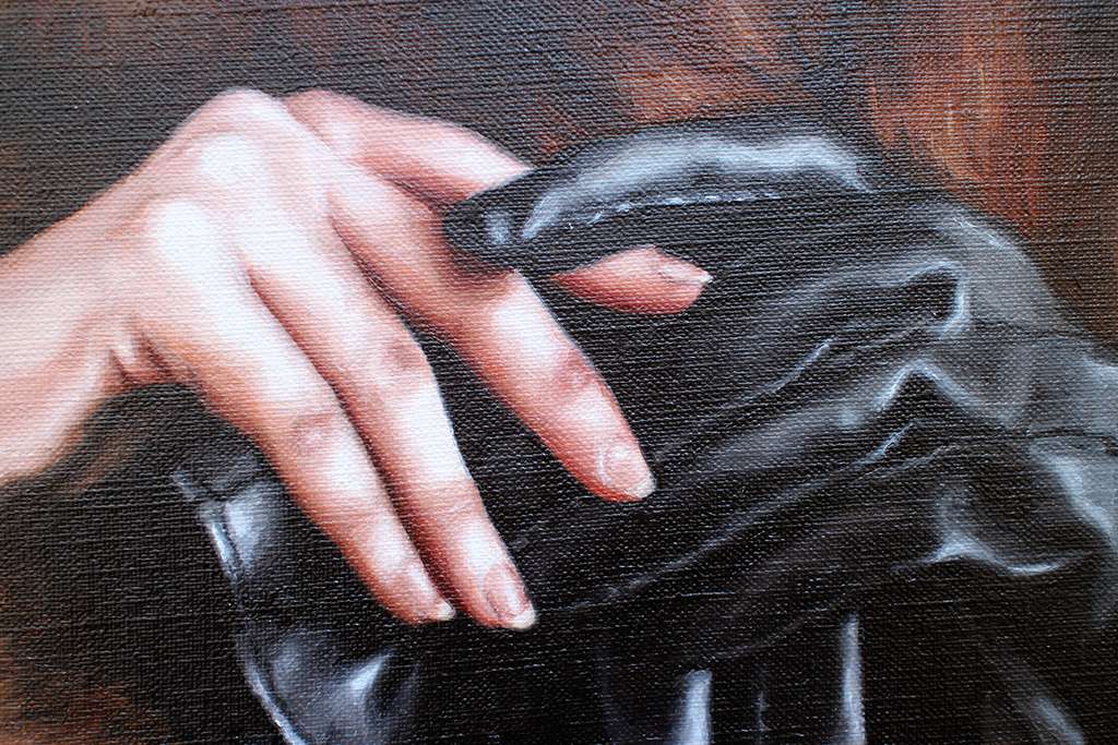 Recurring elements, latex gloves, stage makeup, ribbons, deliberate gestures, start to form their own subtle language around desire and control. But nothing is fixed or fully explained. The relationship between you and the paintings keeps shifting as you look. Rather than spelling things out, A Spy in the House of Love leaves you with something more open, layered, unresolved, and recognisably human.