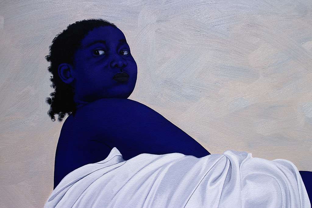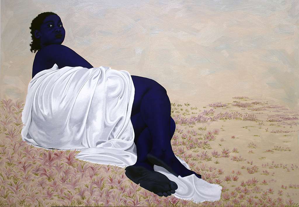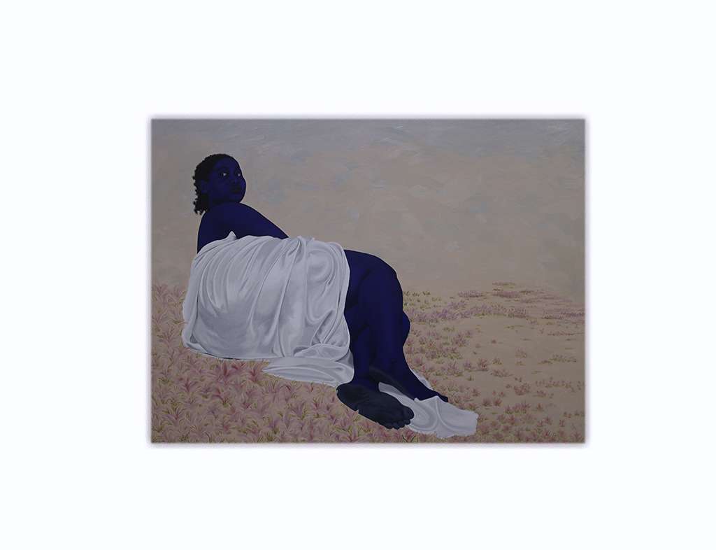 For Abe, indigo signifies a new tribe, a “breed of Black” that transcends social, cultural, and historical boundaries. It becomes both skin and soil, grounding her figures in shared ancestry while allowing them to flourish beyond it.