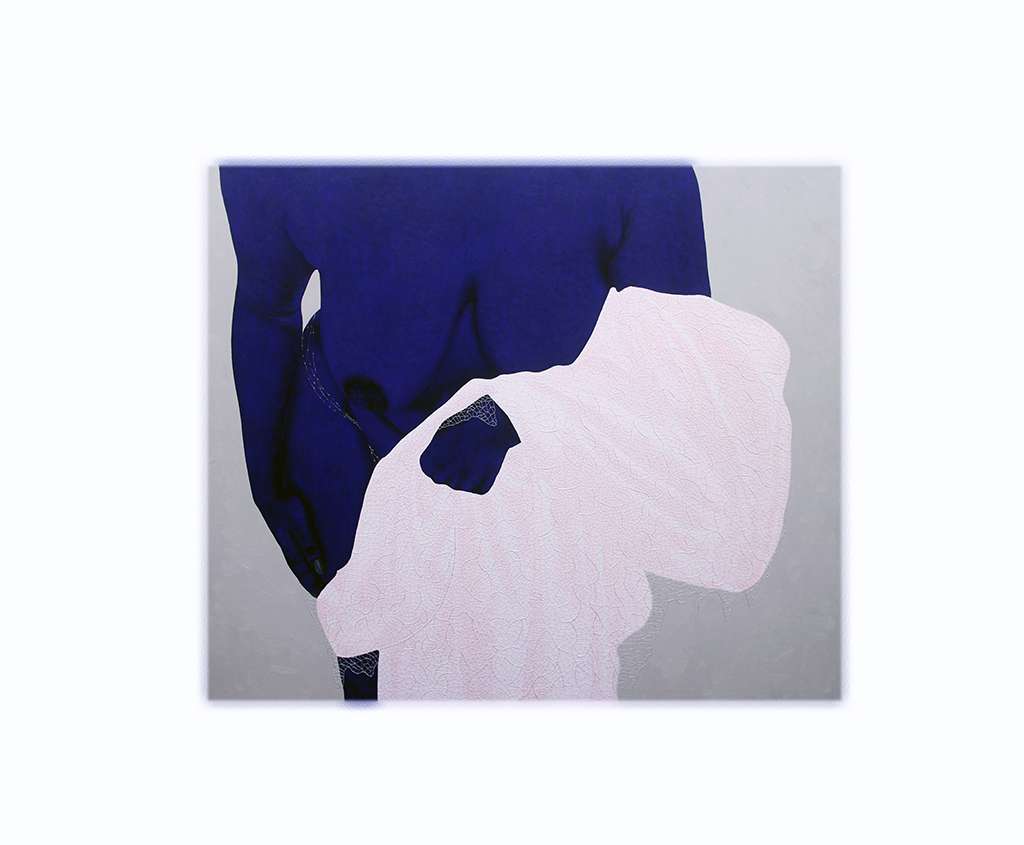 Embroidery, a recurring motif, functions as both a symbol of femininity and a vessel of inheritance. Traditionally practiced by women and passed down through maternal lines, it becomes an act of continuity in Abe’s hands.