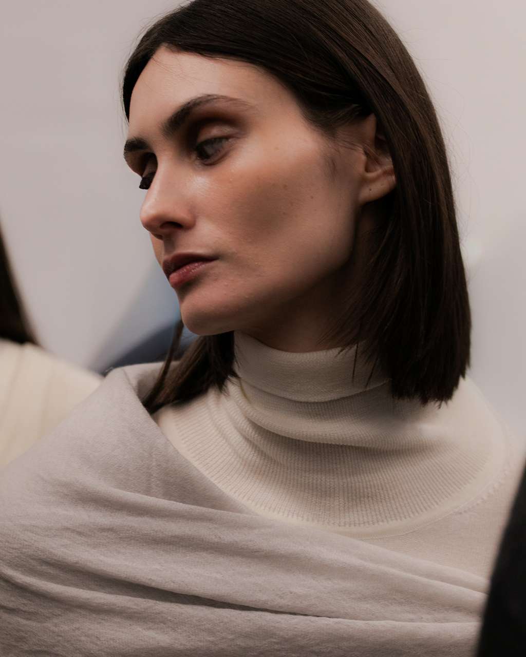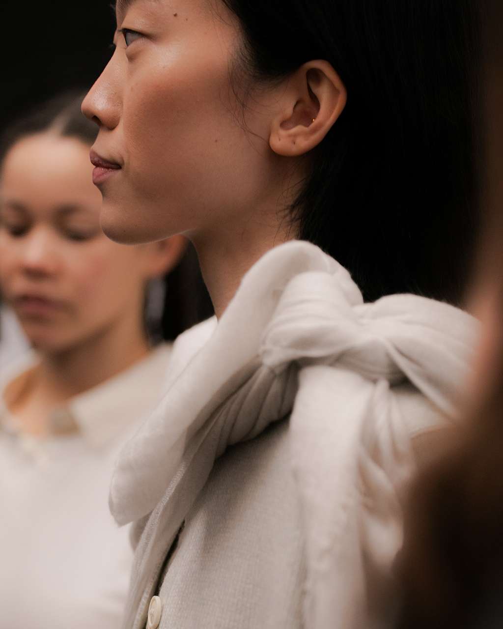 True to the brand’s materials-first approach, the palette remained understated and natural, featuring undyed ecru, dove mouliné, recycled silks, and fine wools. Drawn from nature and shaped by craft, the collection speaks softly, but with lasting resonance.