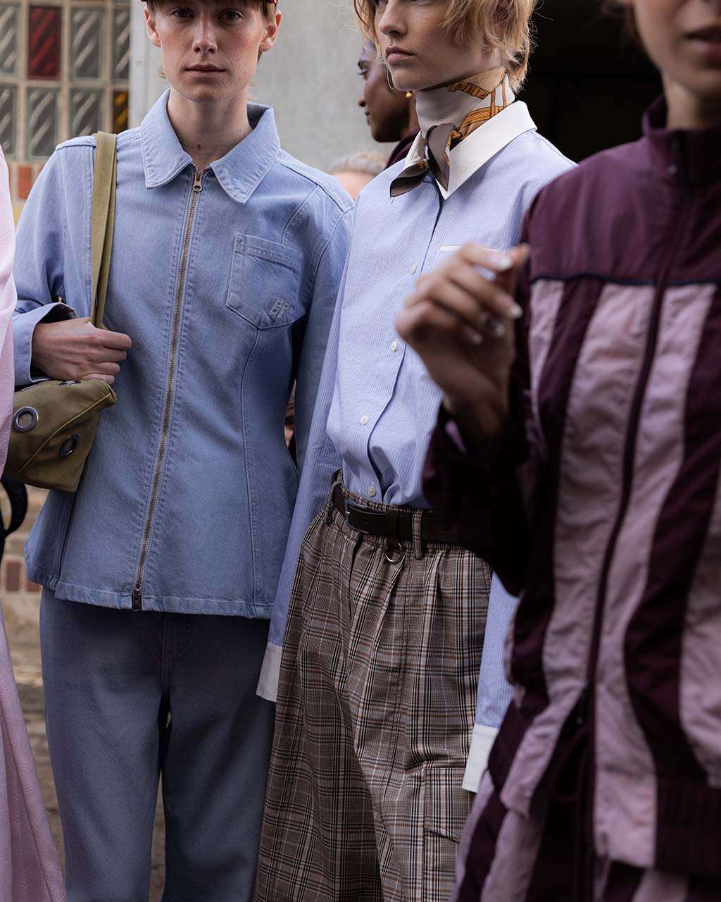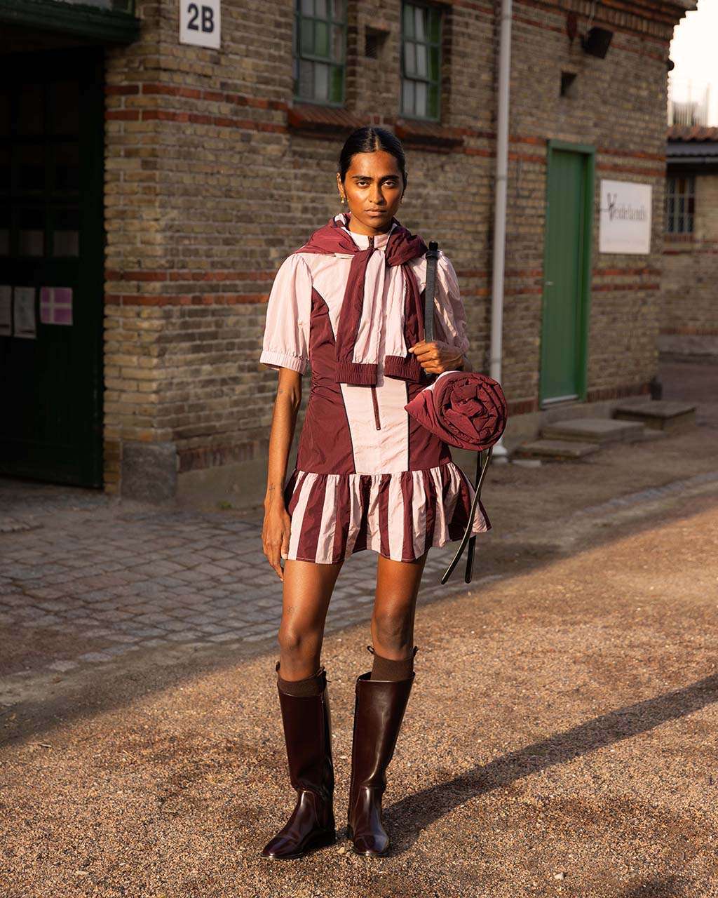 During Copenhagen Fashion Week 2025, Baum und Pferdgarten unveiled a preview of their Spring/Summer 2026 collection, titled “Notes from the Grandstand.” Drawing inspiration from the world of the Derby, the collection was a sophisticated play on contrasts—where sporting functionality met aristocratic glamour. The creative directors reimagined the movement and vibrancy of the racetrack, merging jockey-inspired uniforms with elegant guestwear seen at high-society racing events.