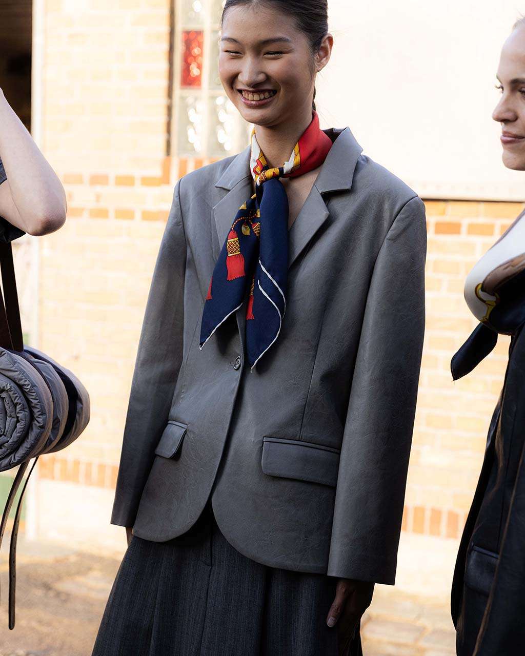 In their own words, Baumgarten and Hestehave said: “We were drawn to the sharp colour-blocking and purpose-driven silhouettes of jockeys — so bold, so functional, so instantly recognisable. And just as captivating were the guests, dressed to be seen from every angle. That tension between performance and pageantry gave us a rich foundation to explore character, contrast, and everything in between.”