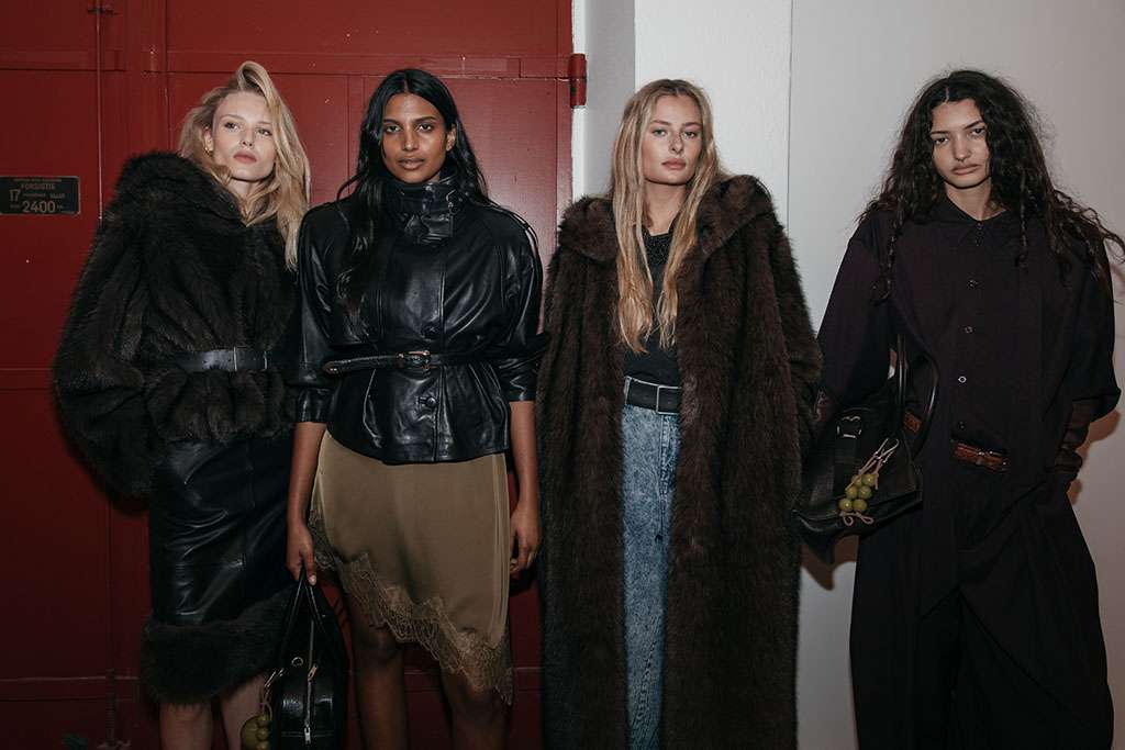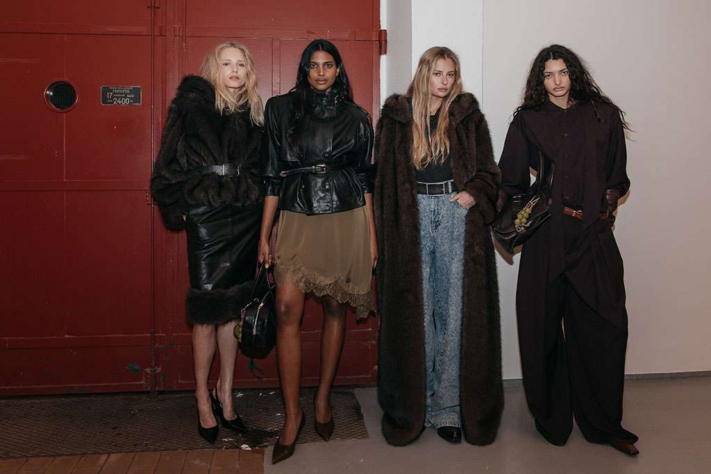 • For GESTUZ, the Autumn/Winter 2026 collection Smokey Mirrors is an exploration of personas, transformation, and the multifaceted nature of femininity. Faux fur coats, high collars, and woolen scarves wrapped tightly around the face, as if the women have just stepped in from the cold, gritty streets. A leather jacket is slowly removed, revealing the details beneath, inviting us into a world where different identities slowly unfold with every look.