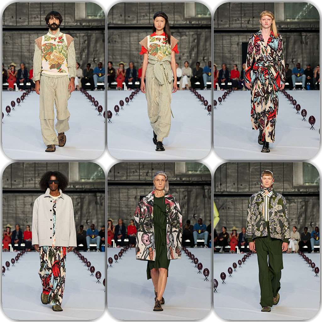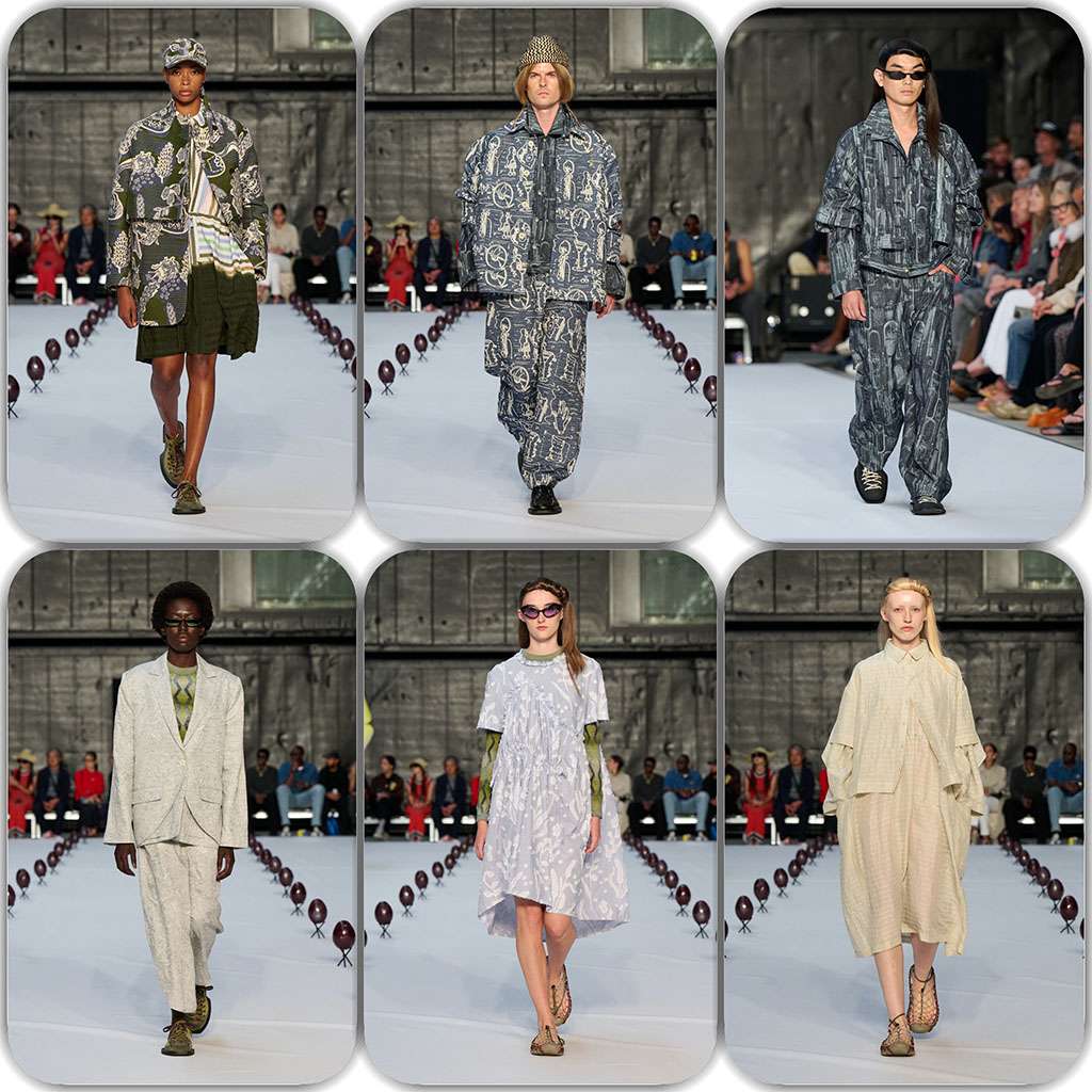 The collection’s silhouettes and prints drew from everyday protective vessels — from instrument cases to double-bass-inspired dresses — incorporating jacquards, woven motifs of hens, eggs, roots, and amulets. Through Everything Cracks Eventually – I’ll Be Gentle, Vibskov conveyed faith in potential, reverence for life, and the quiet power of care, transforming vulnerability into a visual meditation on trust, generosity, and renewal.