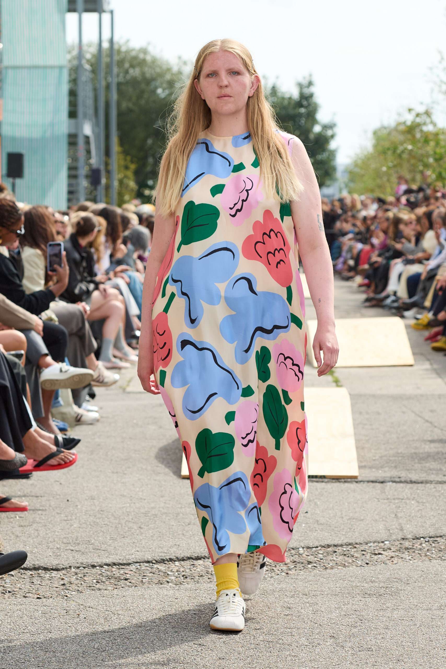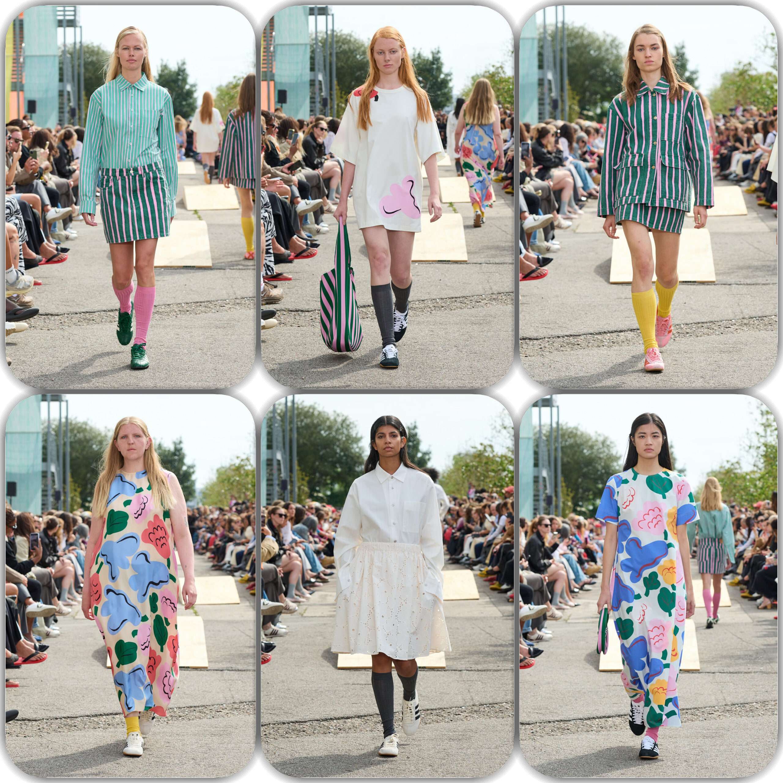 Marimekko, the iconic Finnish design house renowned for its bold prints and vibrant colors, presented its Spring/Summer 2026 collection at Copenhagen Fashion Week 2025, exploring the art of pattern through playful proportions and balanced compositions. Set against a former industrial site in Copenhagen’s harbor, the runway show fused performative expression and craftsmanship, highlighting the brand’s signature use of dynamic florals, stripes, and color contrasts.