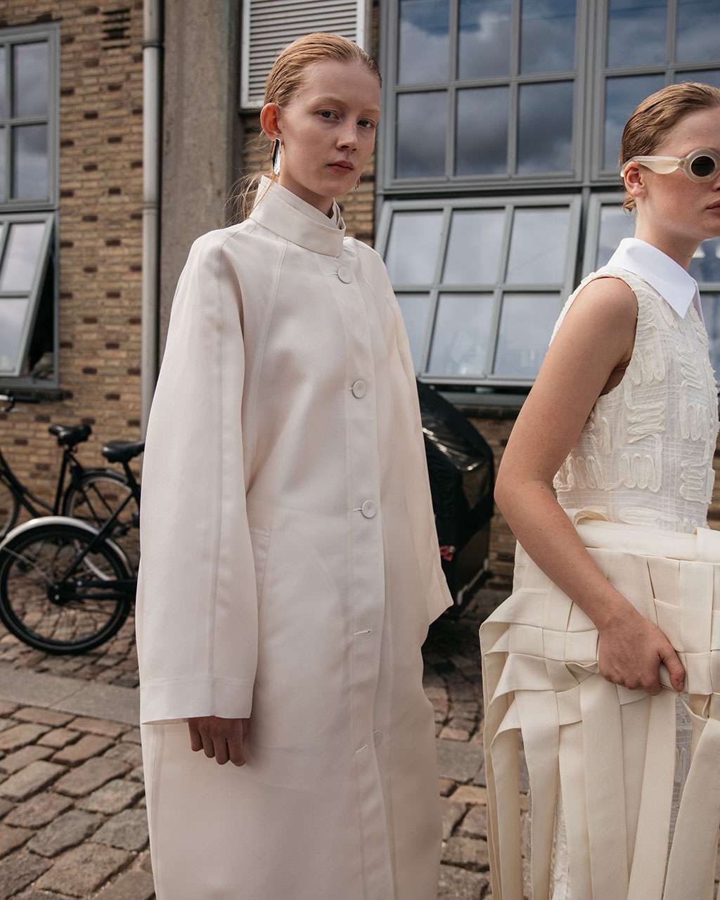 Each piece is cut from carefully sourced natural fabrics, chosen for their beauty, durability, and transformative character. Through thoughtful construction and refined tailoring, materials shift in expression when shaped and combined in unexpected ways. The result is a quietly powerful aesthetic—elegant, enduring, and unmistakably Danish—embodying the essence of contemporary craftsmanship.
