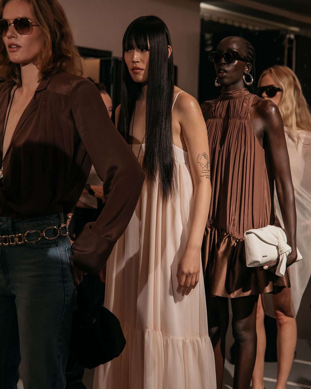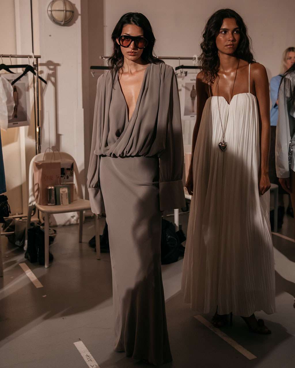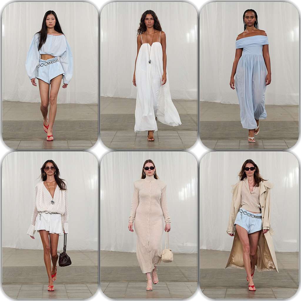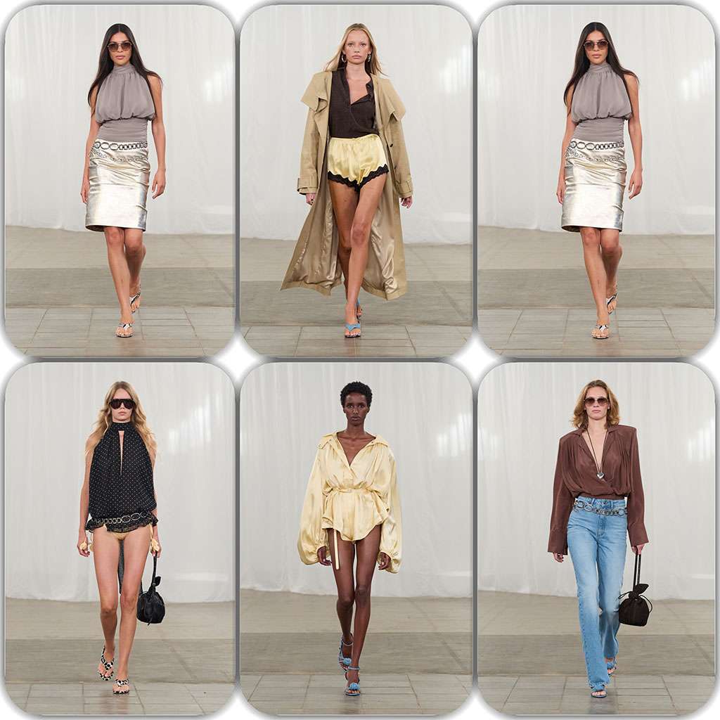 For Spring/Summer 2026, ROTATE presents its most feminine chapter yet — a high-summer reverie steeped in warmth, light, and nostalgia. The collection celebrates fluid silhouettes and tactile elegance, from sheer gowns and scarf-tied dresses to sharp linen tailoring and sculptural slip styles. Inspired by the golden glow of late afternoons, a palette of sun-washed neutrals and delicate pastels meets airy fabrics like satin, chiffon, and organic cotton.