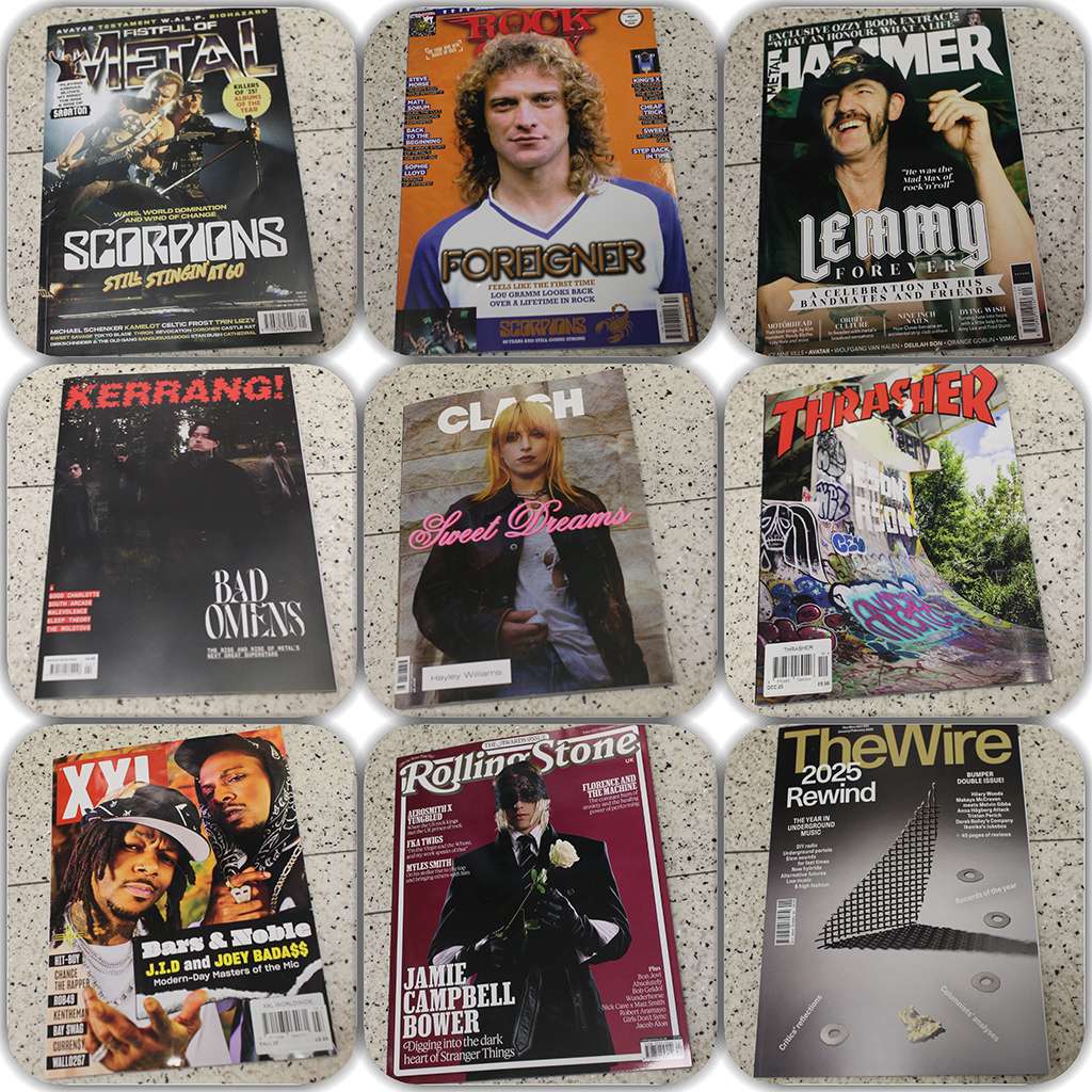 “prog” magazine…“classic rock” magazine…“rock candy” magazine…“fistful of metal” magazine…“metal hammer” magazine.